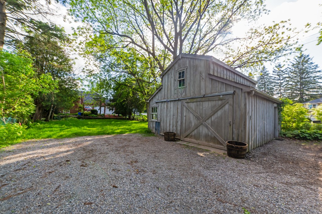3 bedroom charming and cottage style home with barn and large private, treed yard perfect for the avid gardener. Blocks from Ancaster Old Mill and the wondrous beauty of the creeks and trails of Dundas Conversation area