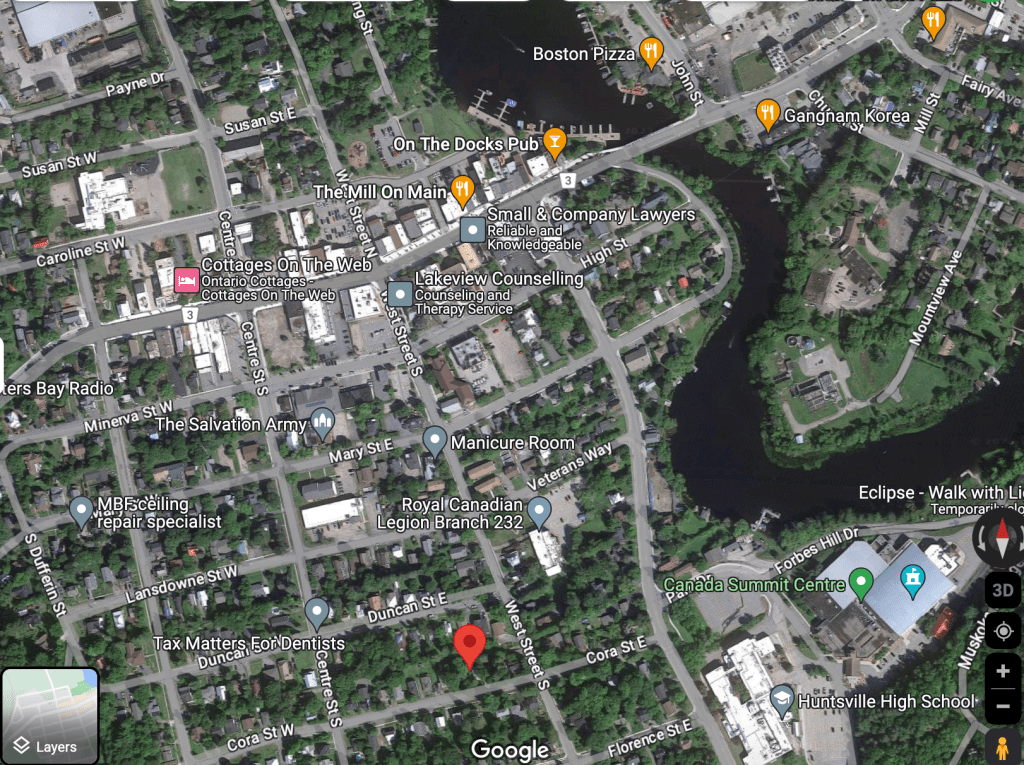Located in a thriving community in Huntsville, Muskoka. It offers great opportunities for investors or families looking for a quaint setting. The location is advantageous, being only 5 blocks away from downtown Huntsville and approximately 600 meters from waterfront access and Lions Lookout road.